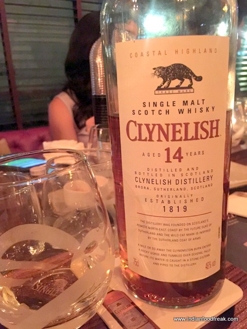 Perfectly paired tostadasWhat I found most interesting is the tastefully paired exclusively curated menu to enhance the palate as one lets the Single Malt sink in. One associates paired menu with wines, this single malt pairing was a first for me.  Each pairing complements each other beautifully and that is something to be experienced! The herbal, pot-pourri and toasted lemon notes of the typically Lowland Glenkinchie Malt bond well with the tomato-jalapeno salsa, melted cheese and garlic-served Smoked Scarmoza Tostadas whereas the Asian flavours of Thai chilli, basil, ginger and lemongrass in the Thai Prawn Kataifi perfectly complement the buttery toasted nut and citrus cheesecake palate of the Singleton of Glen Ord. Similarly, Talisker’s rich maritime peat-smoke and seaside salt requires an equally powerful flavour to match – the Truffle in the Truffle Parmesan Fries here provides the boldness needed for this interesting flavour combination. Clynelish 14 Highland has a creamy, flowery palate that needs an equally light touch which it gets from the Asparagus & Emmental Filo Roll. The asparagus has an earthy, lightly salted flavour which works well and the filo pastry dissolves wonderfully in the Whisky. Other Appetizer Options included the Mushroom Coriander Pesto, Tamarind Cottage Cheese, Chicken Gyoza & the Jerk spiced chicken. Impressive!