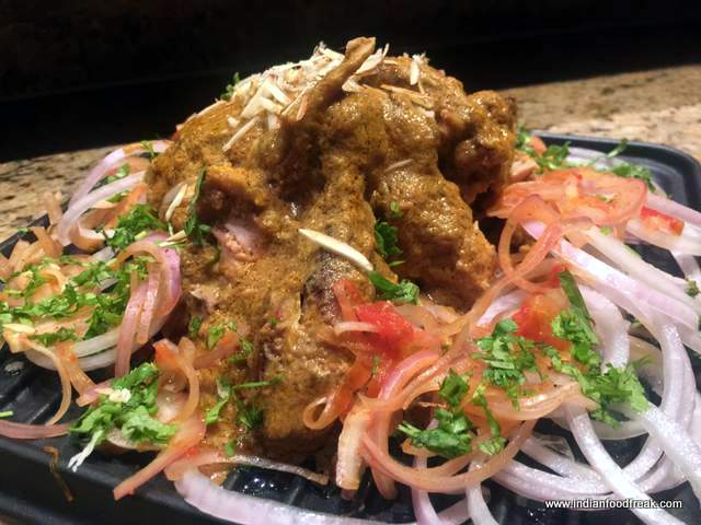 Kakori KebabsAnd then they arrived – the most tender Kakori Kebabs I had ever tasted. I was in seventh Heaven – the kebabs were made with the finest quality mutton mince and some khoya had been added to it making it even more juicy and tender. The Murg Ke Parche was wonderfully spiced with black pepper and garam masala which was quite different from the regular ones. Then there was the Pasanda Kebab – that it was spiced just right goes without saying; what needs a mention is the quality of meat served – it was top of the the line, the best cut with little bit of fat on it which added to the texture and taste.