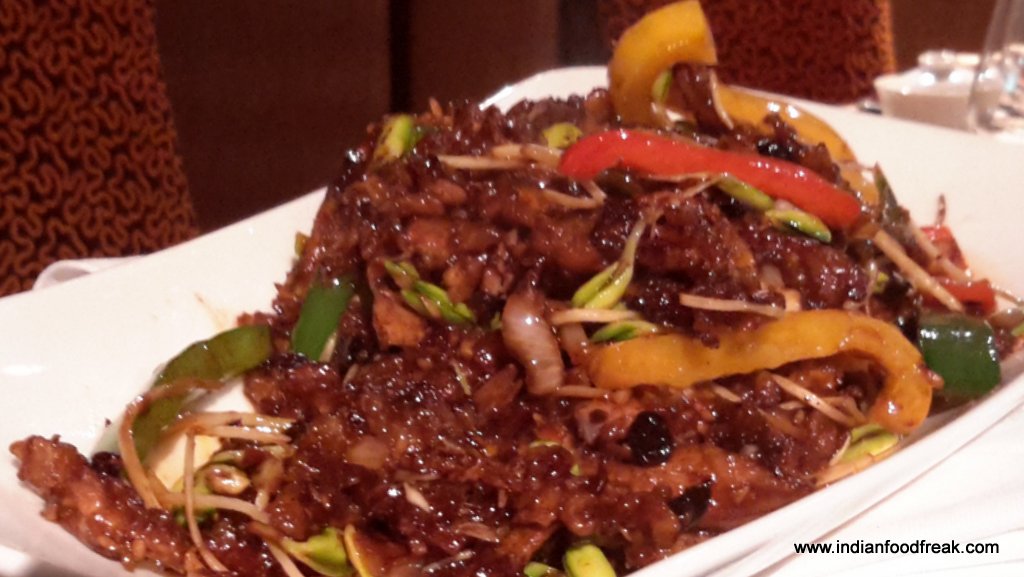 When one orders the Peking Duck, one gets a duck roll and a choice of a deep fried duck bone spicy, salt and pepper or a stir fried shredded duck with vegetables in black bean sauce. The duck roll had the duck cooked with its crunchy skin on and was served with spring onions, cucumbers and the chef’s own plum sauce. The deep fried duck with the bone was nice and crunchy but the bones were really putting me off as twice I bit into the bone. I wish that it was a boneless salt and pepper.