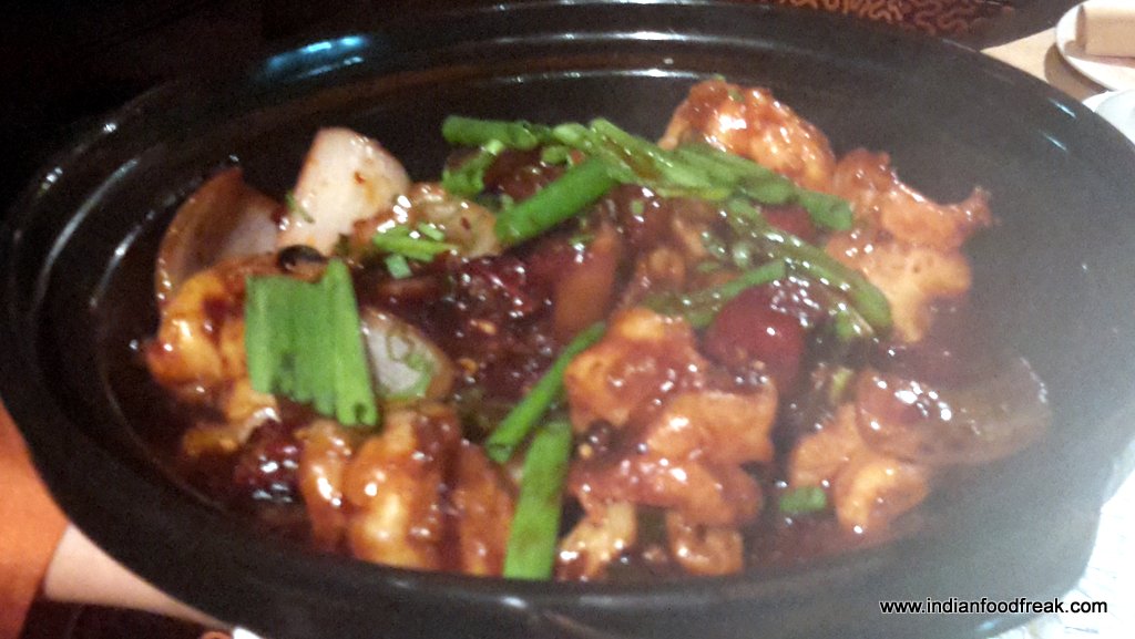 Prawn Stir Fried, Szechuan chili bean paste, deng long chili in clay pot were prawns cooked to perfection with a nice bite to them where they had not gone mushy and the sauce was spicy and sweet.