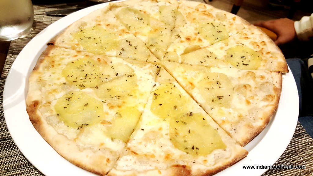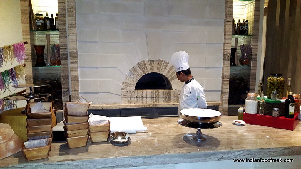 Another addition to the kitchen is an inbuilt pizza oven. The best part about the oven is that it has a rotating plate (just like a microwave), ensuring that the multiple pizzas when kept inside are evenly cooked. I don’t remember seeing this feature anywhere in Delhi-NCR so far. My daughter enjoyed the Bianco pizza that has potatoes as topping and sour cream as the sauce. The base was crisp (imported flour is used) and milk is used instead of water for making the pizza dough to get the crisp texture.