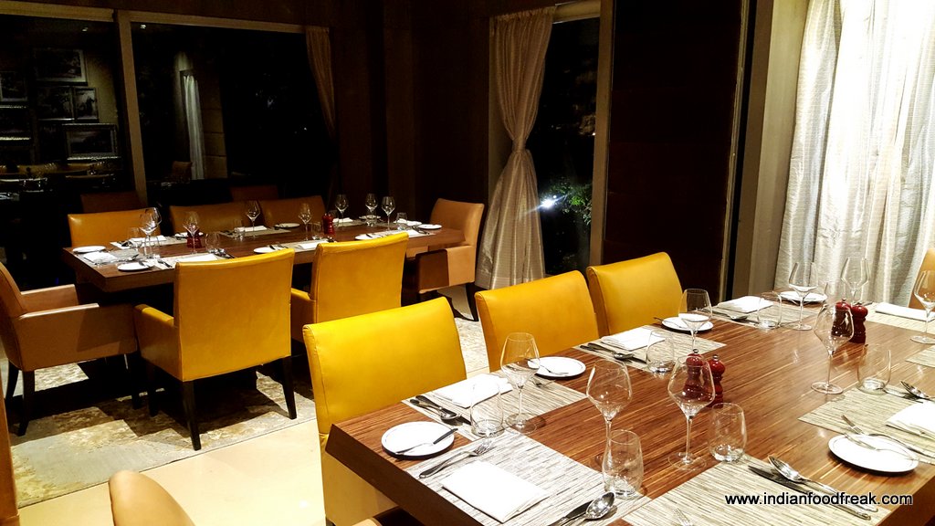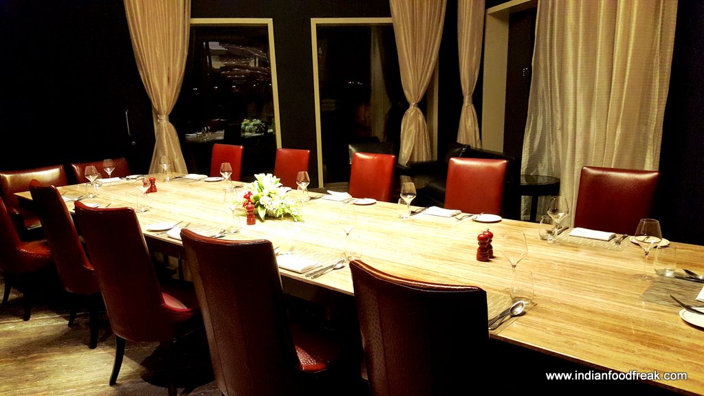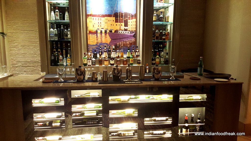 Pullman was rechristened Le Meridien in March, 2015 and only had the coffee shop functional there for the last 18 months or so without any specialty restaurant. Finally, under the new executive Chef Suprabath Roy ably assisted by Sous Chef Amit Kumar, the specialty Italian restaurant Bella Cucina (meaning beautiful kitchen) started a week ago in the same space that earlier housed La Riviera. The refined and understated interiors of the erstwhile La Riviera haven’t changed much in the present avatar except that it now has 3 PDR’s (Personal Dining Rooms). The chandelier at the big PDR makes a very soothing and soft chime sound with the blow of air-conditioning that hits it. The Italian pictures in one of the PDRs and a small fireplace in the waiting room are welcome additions. That said, the star of the entire restaurant is the Molteni showcase open kitchen that costs a whopping Rs. 1.25cr plus. I might be wrong on the pricing as on a previous occasion, the cost quoted to me was just the double.