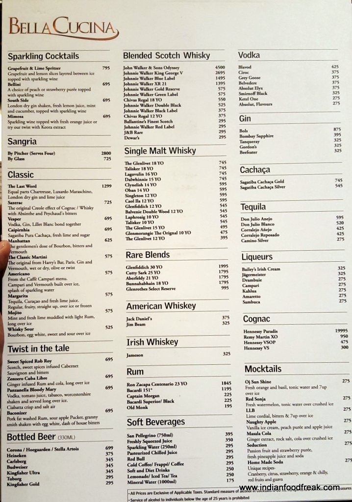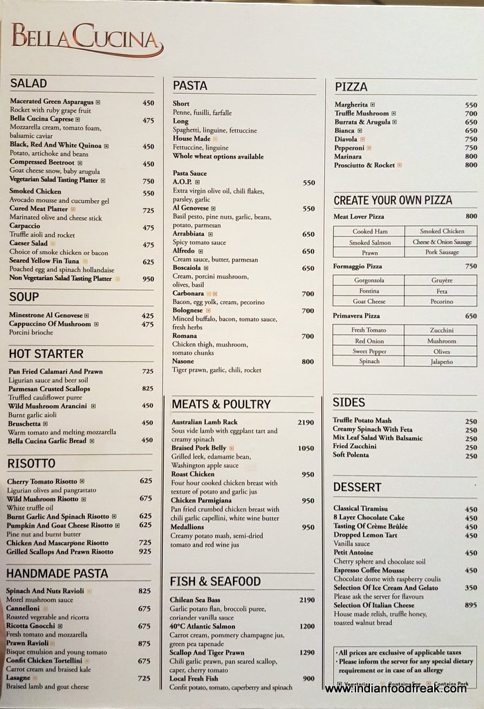 Address: Bella Cucina, Le Meridien, Sector 26, MG Road, Gurgaon-Delhi border, Gurgaon | Phone: 0124-4992000