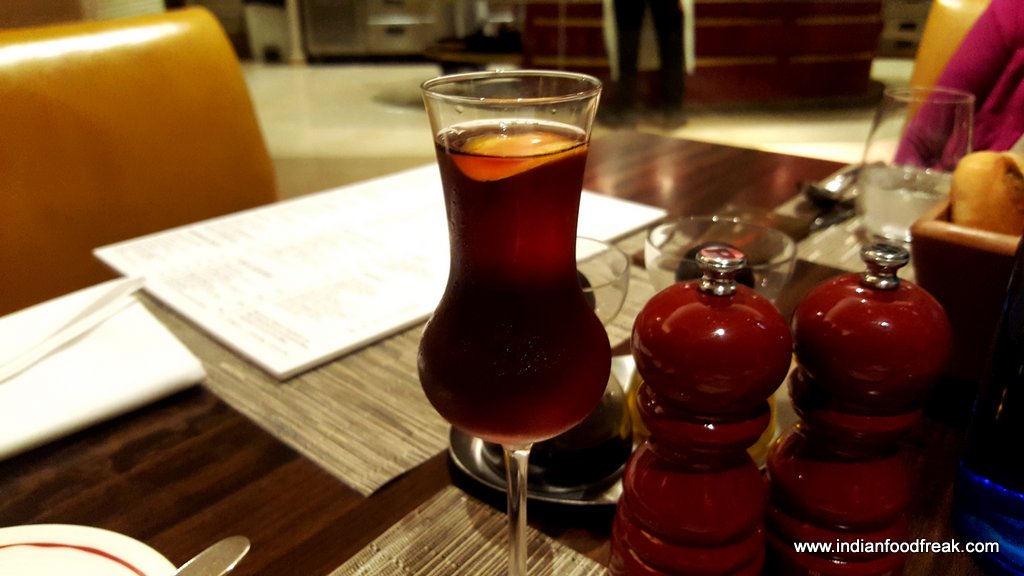 Before parting, a few words on the alcohol on offer here. The wine cellar boasts of some brands of liquor not available elsewhere in Gurgaon. For instance, I have never seen a 75% v/v bottle of Bacardi or Liquor Luxardo or Chartreuse. A special mention for Sweet Spiced Rob Roy that is a twist on Rob Roy, a classic (uses sweet spice infused Cabernet Sauvignon) served by the restaurant manager, Dhinender Kandpal. Given my limited capacity to drink alcohol, perhaps I shall share try more cocktails with these ingredients next time.
