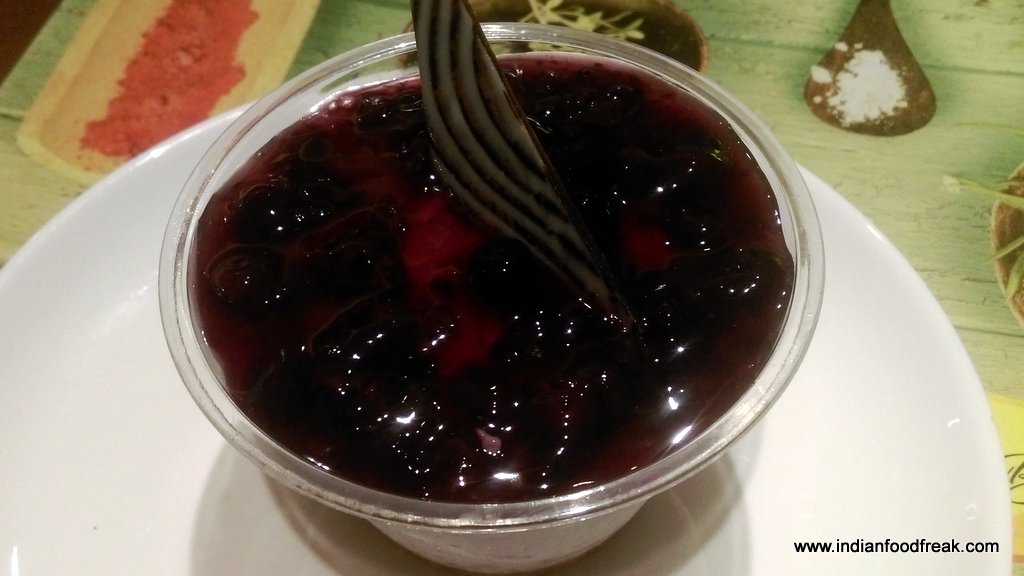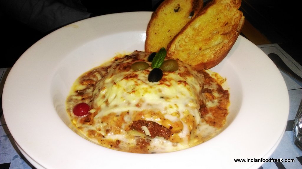 In main course we again decided to go wide in terms of cuisines and ordered Cape Ground Lamb Lasagna (Rs 495), Baked Penne Pasta (Rs 450), Marinated Stuffed Chicken Breast (Rs 525) and Nellore fish curry (Rs 625) that covered Italian, Continental and our own not very popular Indian dish from Andhra region. The lasagna and penne pasta were good but it was the Nellore Fish Curry with the tangy taste that stole the show. Excellently flavorsome, the sole fish savored perfectly with steamed rice. The Stuffed Chicken Breast had a tantalizing filling of spinach and mushrooms. Grilled to perfection, the sauces added to the moistness of serving.