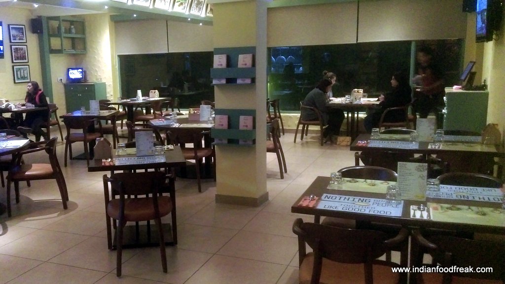 Set up in a warm and balmy environment, the yellow and green interiors are welcoming. The classic English music in the background was quite soothing and complimented the environment. One has to take two flights of stairs to reach the den. While the stairway is quite welcoming and has been done well, but it might be of a trouble for the old or differently-abled.