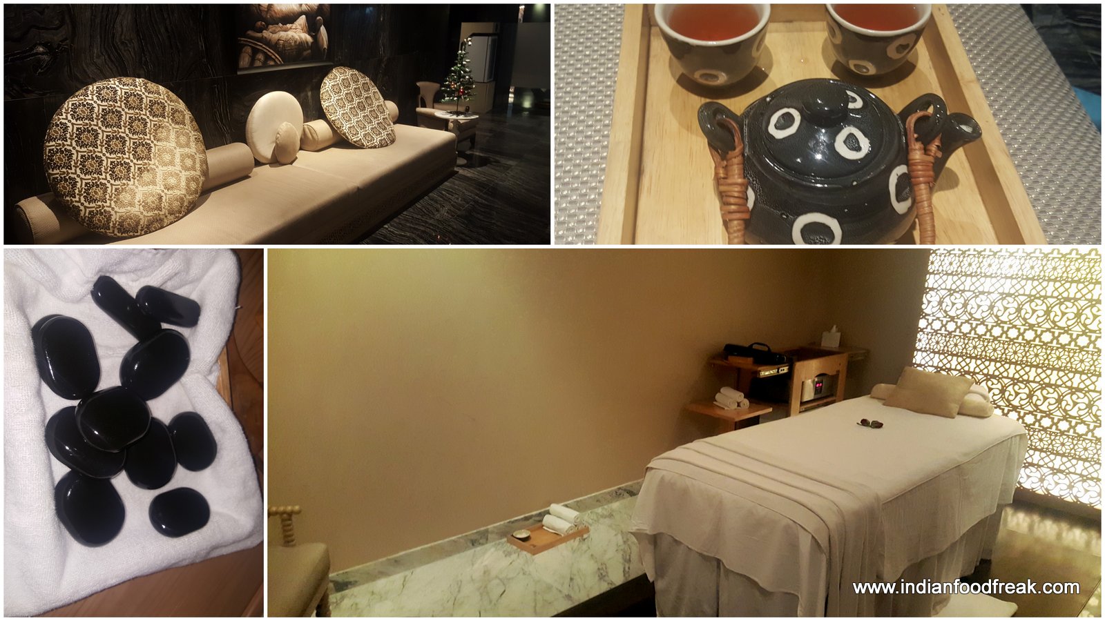 Spa: The hotel has 3 well appointed rooms on the ground floor for spa (Though no couple spa room). I went for the hot stone massage while my wife went for deep tissue massage. The spa treatment for me is the modern take on ayurvedic potli massage where bundle of cloth dipped in hot oil is used to massage the paining area. Similarly here the hot lava stone is used to treat the affected area. The masseur knew his job. Unlike most other massages this starts from the stomach instead of the legs.  A steam bath post that 60-minutes massage relaxed us and made us fresh for the dinner.