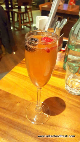 When we got there, we were seated at a table overlooking the beautiful Dubai Marina. What a gorgeous view, well complemented by their signature cocktails.  The Strawberry Aperol Spritz was light and refreshing though marked by the strong presence of alcohol in it.  The gin based Pomegranate Collins too was quite strong and dry, and despite being fruity, had more alcohol than the fruit.  Good cocktails, if you like your drink strong!