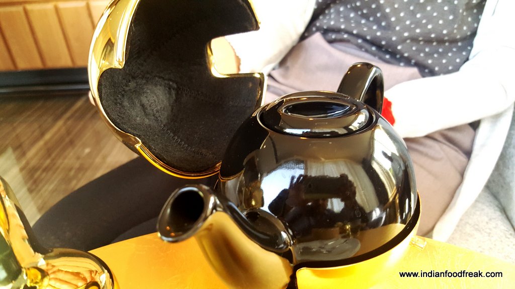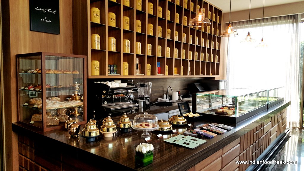 Walking in to Roasted, you are enveloped by the warmth of the wooden interiors, gold accents, and sunlight beaming through the windows.The impressive ceiling high display of TWG (The Wellbeing group) luxury range of tea canisters, Blue Tokai coffee and an array of inviting treats had my friend and moi all geared up to indulge.