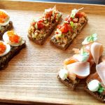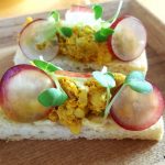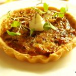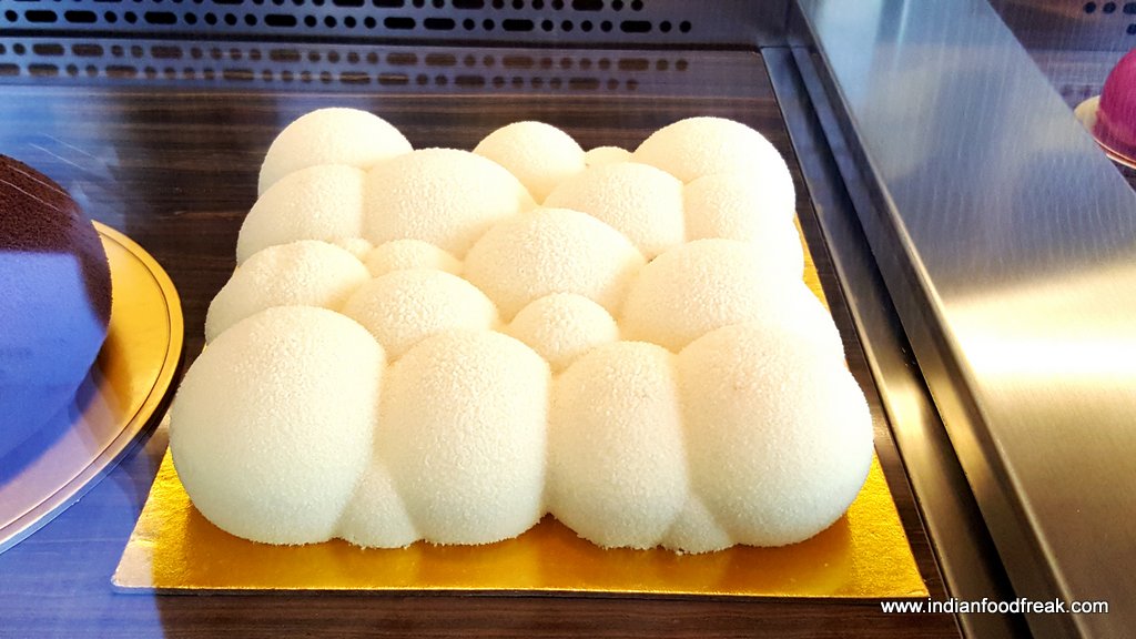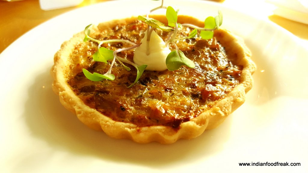 Moving on to the savouries, we sampled finger sized bites from the sandwich section. The stars for me were the Quail egg with grain mustard yolk and tobiko (a popular substitute for caviar) and the Organic egg with grain mustard and parsley.The Confit duck arugula with juniper, House cured salmon with lemon cream and apple scented onion,Goat cheese with roast pepper and walnut and Confit coronation chicken with celery stalks and California grapes were par excellence. The bread is toasted with surgical precision, firm enough to hold the filling and soft enough to chew easily. However, the Chicken and wild mushroom Quiche was dry and lacking in the “gooey” quotient and wasn’t at the same level as the others.