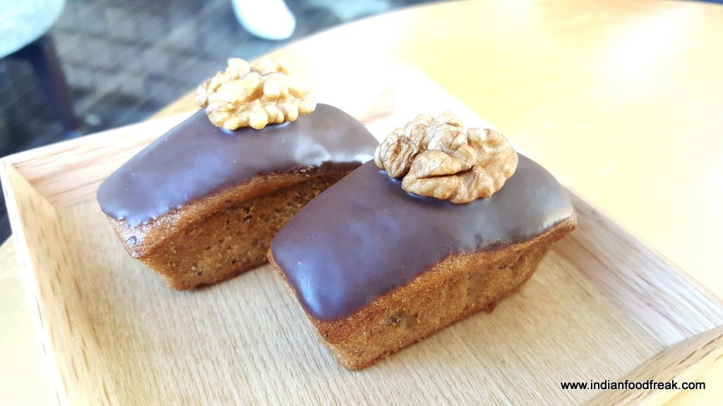We started with The Silver Moon leaf tea, peach flavoured and refreshing, accompanied with the madeleine (very small sponge like cake) which had a hint of lemon. The teas we tried were wholesome and had their own distinct flavour. The Red of Africa with an almost medicinal quality to the self-explanatory Jasmine Queen, Chamomile and Moroccan Mint were on point. My favourite was the Eternal Sunshine tea laced with the essence of Alphonso mangoes. Literally summer in a cup! Every tea was paired with a tea cake or pastry. We sampled the Financier, Banana and walnut cake as well as the Carrot and ginger cake – each one faultless and divine.
