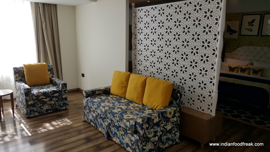 Rooms: Mosaic hotel has three types of rooms – 26 deluxe rooms, 7 suite rooms and 13 attic rooms. While we stayed in the deluxe room which was quite comfortable, we did go and check out other rooms too. The Suite room has an extended portion to accommodate a sofa cum bed with a partition in between. Attic room has twin level room with a spacious master double bed on the ground floor and another twin bed on the top floor. Each room has only 1 washroom and contains tea-coffee maker, digital safe, mini bar, 38’ LED TV etc.