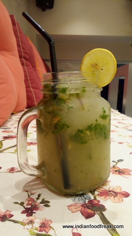 The Café has applied for license to serve Beer and Wine; however since it is yet to come through, the menu as of now does not have any hard drinks. We ordered for one Orange and Kaffir Lime Shikanji (Rs.195) and one Lychee Ginger Mojito (Rs.195). We loved the fact that both the drinks were not overtly sweet.