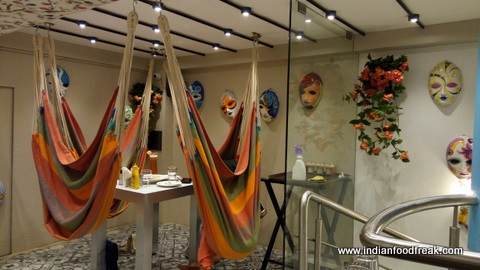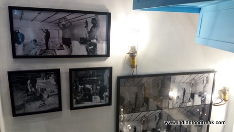 The ground floor pays tribute to Indian Railways with rails under the floor and bunker styled tables.