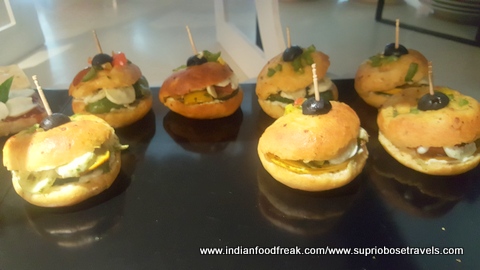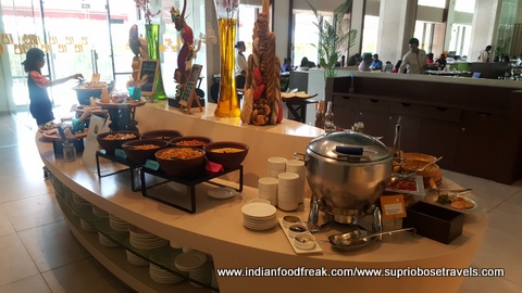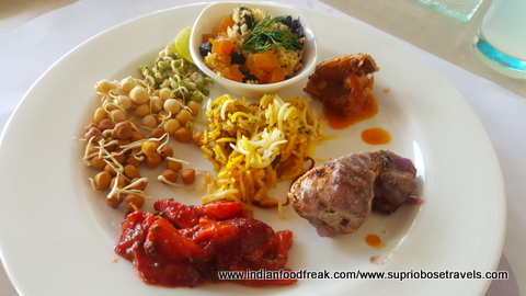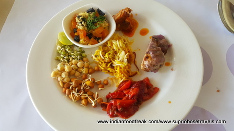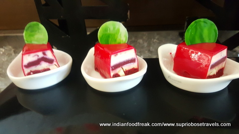 All our main meals (Breakfast, Lunch and dinner) were served at their main rectangular shaped restaurant called the “Square” (perhaps naming it after the colloquial term used for a meeting place, but the irony is too funny for me to ignore). The food spread here is decent, but a bit run of the mill. The summer menu was quite interesting at it used many water vegetables in its spread thereby living up to the freshness of the summers. I also liked the fact that the portions in the buffet were small and apt which helped retained the moisture in many of their dishes. The South Indian, Pizza, paratha and egg live stations are apt, but need faster service. The stand outs from all our meals and the lavish high tea spreads were most definitely the cookies with some unusual frostings like sundried tomatoes and the Ghosht Dum biryani. My compliments to the chef for these.