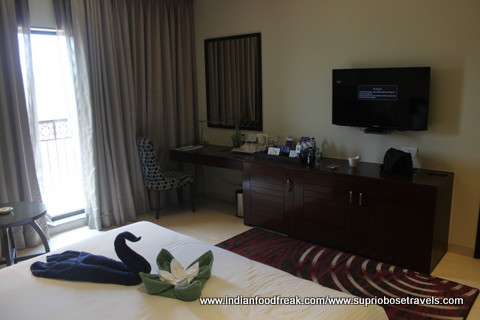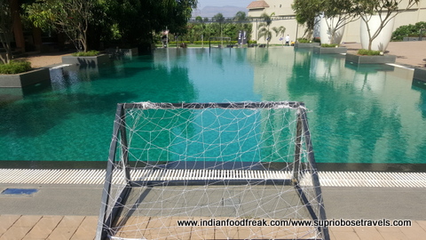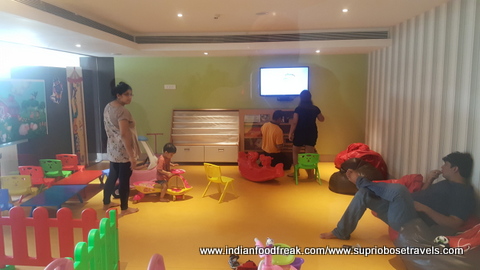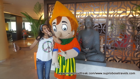The chaos and cacophony of an outgoing offsite corporate group greeted us as we entered the hotel and it seemed as if too much was happening at the same time. There were jugglers juggling, mascots roaming around clicking pictures with kids, other kids on stuffed horses riding along, a guy on Segway moving about, welcome drinks being served, people playing foosball and table tennis, an MC making the outgoing group dance. The carnival like atmosphere in the lobby itself was a bit too much for the ageing old me to handle but worked well for the kids because before I could set my bag on the floor, I lost the two of them trailing Pinocchio and the Segway man, or somewhere between them two!