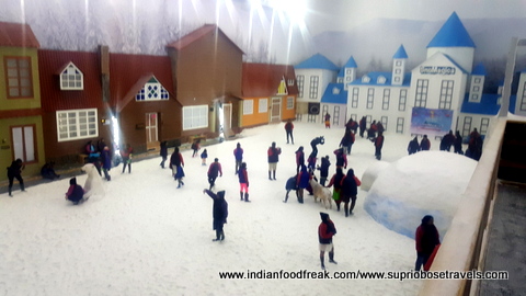 This was followed by our visit to the newly opened Snow World at Imagica. People can buy the tickets to this indoor snow arena separately from Imagica or may choose to club it with it as well. The indoor snow park has a small snow dance area, igloo, regular artificial snow falls and ski slides. My kids had a blast sliding down these slides (as did I). the only downside of the entire experience was the horrible stinky snow jackets that the park lends out to its guests. Either a sanitizing mechanism needs to be brought in place or I highly recommend visitors to carry their own.