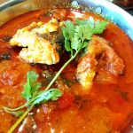 To our surprise, as we thought that we were free from eating and drinking, we were asked to keep sitting for another final round of main course. Their explanation was that the last meal should also always be savoury. So, the main course resumed with Bhatwaani, Thetchwaani, Maache ka Jhol, Mandua ki Roti and Pahari Bhaat. Bhatwaani is ground black soya bean pulses cooked for hours and tempered with green chillies and asafoetida. It was gladly enjoyed with the Pahari Bhaat or the local red rice from the hills. Maache ka Jhol was trout, their local fish, cooked in tomato onion and coriander gravy savoured with the Mandua ki Roti.