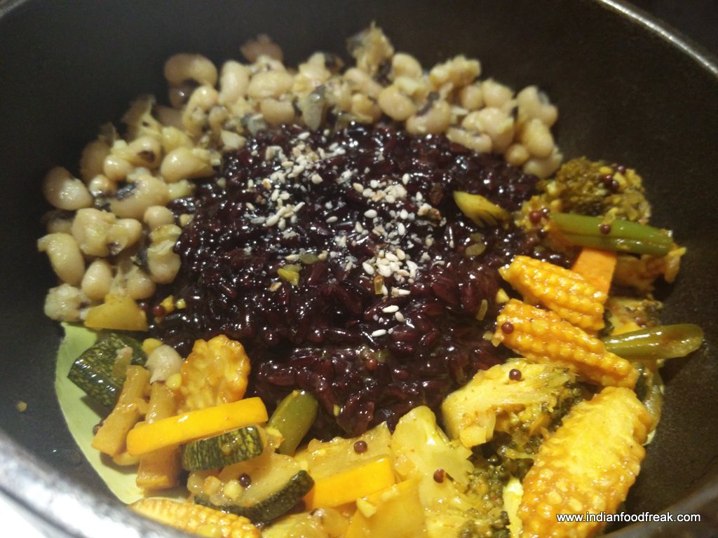 Black glutinous sticky rice with eyed pea and pickled vegetables was a very subtle dish. The rice by itself had no taste but if, with each bite, you managed to eat the pickled vegetables, then it tasted nice.
