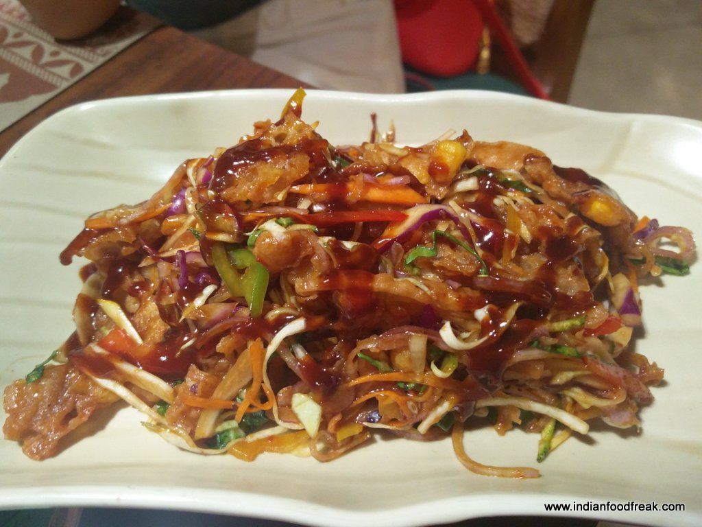 Corn Crisps in Tamarind Sauce was lovely crisp fried corn niblets with onion, cabbage, palm jaggery and tamarind dressing. A must have dish with everything complimenting each other.