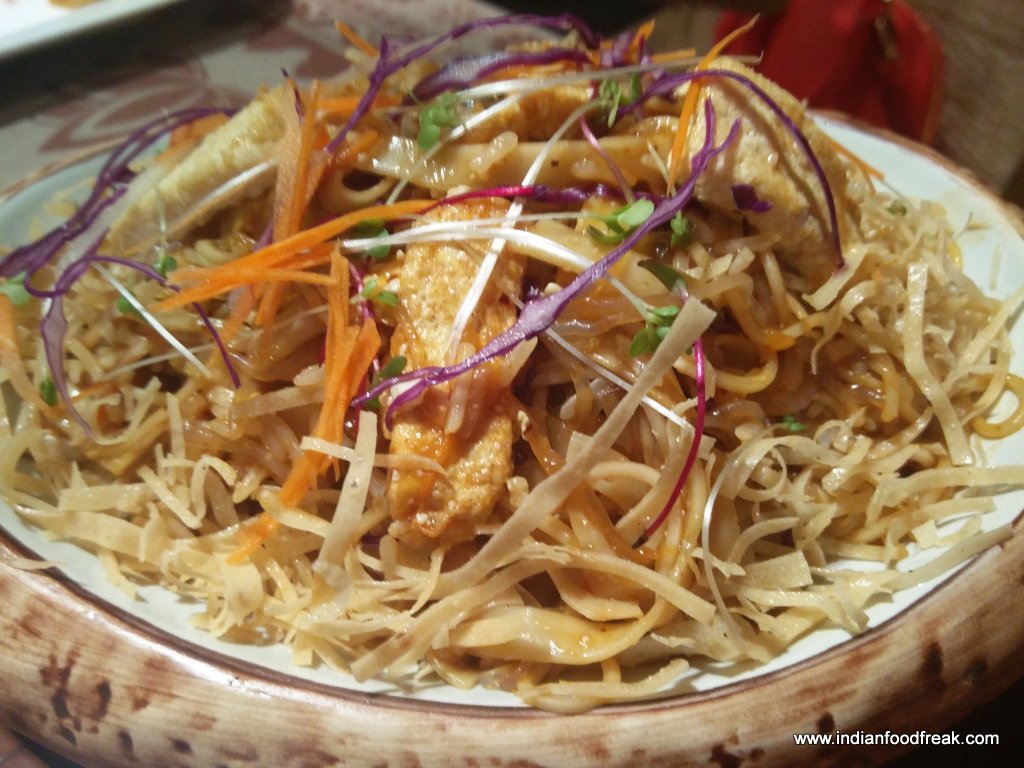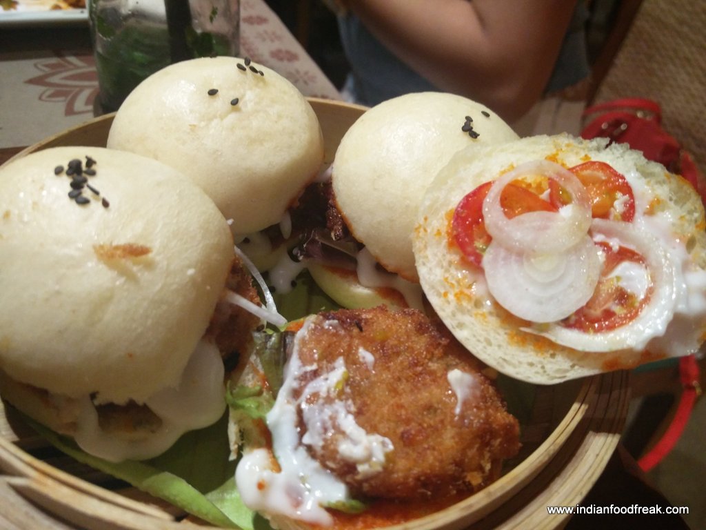 Crunchy Tofu Steamed Buns were served like small sliders. Crumb fried crisp tofu was stuffed within in house steamed soft buns with lettuce, onion, tomato and mayonnaise. What’s there not to like in super soft buns with a crunchy tofu and contrasting textures which complement each other.