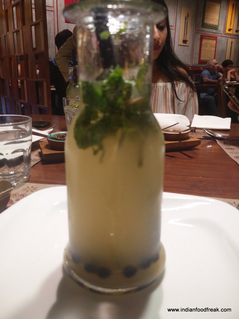 Having seated myself, I was served with a most refreshing drink called Oh! My Tamarind which had a dominant tamarind flavor and jaggery garnished with freshly grated coconut. It really brought alive the palate.