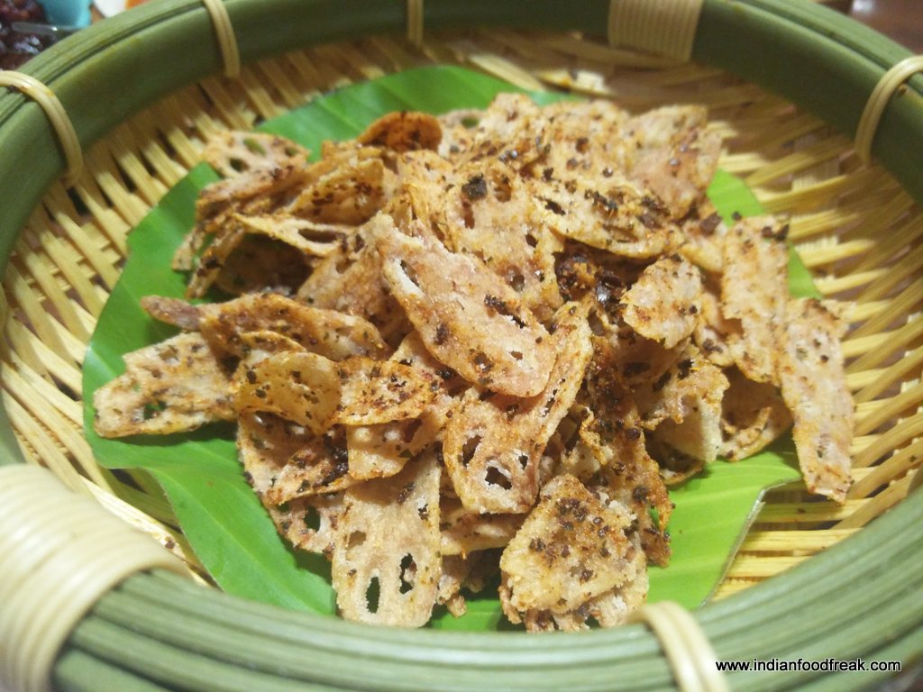 Lotus Stem Fritters were thinly sliced and fried lotus stems dusted with roasted paprika and curry leaves. I could not get enough of them.