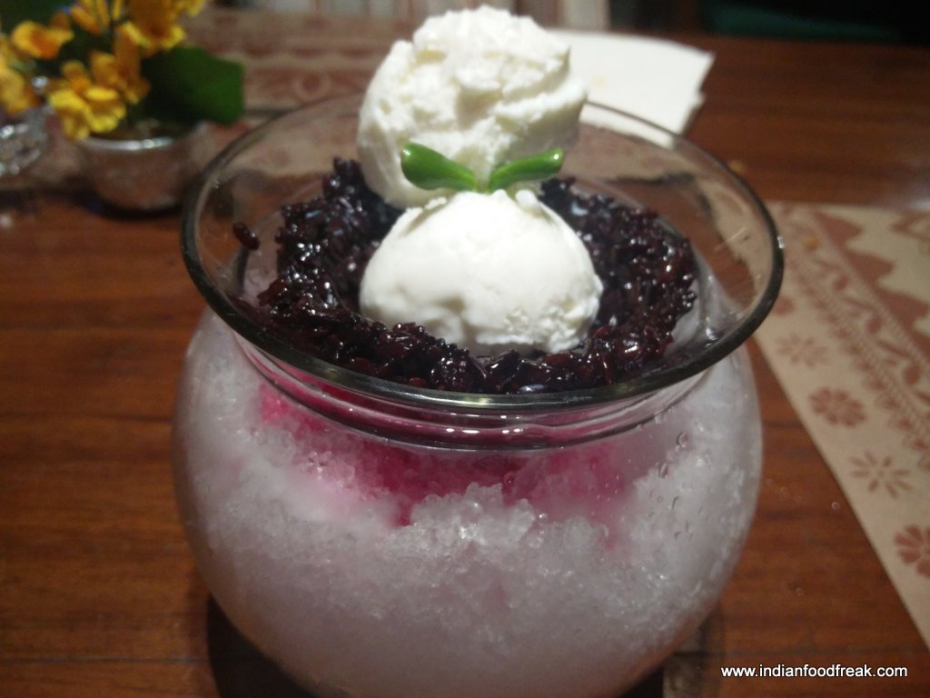 Both the desserts – Tender Coconut Ice Cream with Black sticky rice and Mathcha Ice Cream – were refreshing and different. But save some space in the tummy for the Matcha Ice Cream to give a treat to your taste buds.