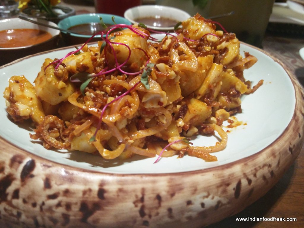 Corn Crisps in Tamarind Sauce was lovely crisp fried corn niblets with onion, cabbage, palm jaggery and tamarind dressing. A must have dish with everything complimenting each other.