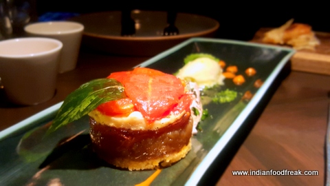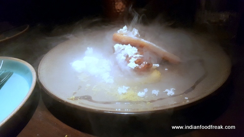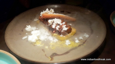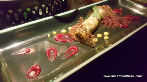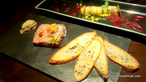 Steak tartare Rs.310 – Mustard ice cream, toasted baguette – Refreshingly simple and delicious, the herbs and slight lemony zing in the tartare felt so beautiful and the ohhh so creamy mustard ice cream was simply divine. Truly multi-dimensional.