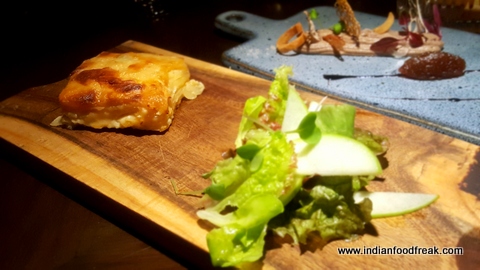Brie en Croute Rs.280 – Filo Pastry, lavender honey – The filo pastry was flaky and the brie inside was perfectly rendered. The lavender honey cut through the saltiness of the cheese giving a perfect balance to the dish.