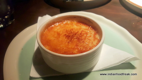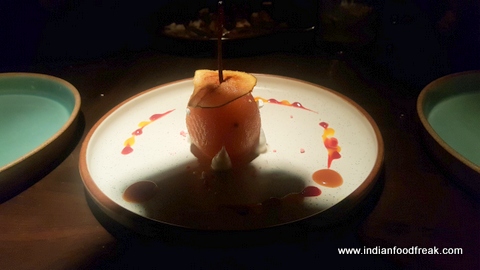 Poached pear Belle Helene Rs.240 – vanilla Ice cream , Hot chocolate sauce – you know a pear has been poached just right when it retains its bite but at the same time has allowed the aromatic red wine flavours to penetrate all the way to the core. The pure vanilla ice cream and the chocolate sauce were good, but I just couldn’t get past the beautifully poached pear.