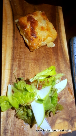 Brie en Croute Rs.280 – Filo Pastry, lavender honey – The filo pastry was flaky and the brie inside was perfectly rendered. The lavender honey cut through the saltiness of the cheese giving a perfect balance to the dish.