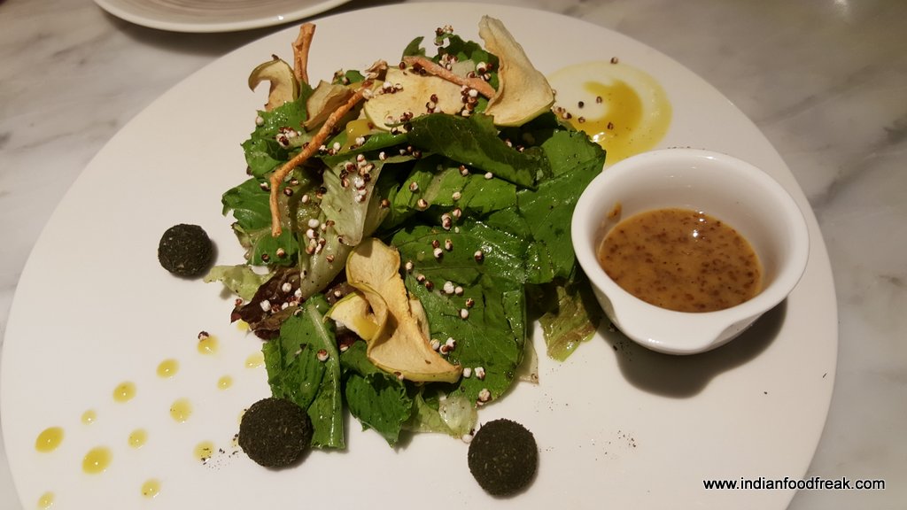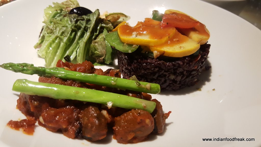 Whatever else you miss eating in Nueva, try not to miss eating their salads. Would like to share here that the salad section is one I normally totally bypass while reading a menu but egged on to try them, I was so happy that I did. Cloud Salad is a salad with cottage cheese mousse with gherkins and wasabi, surrounded by earthy wild rice and fresh greens in a balsamic and mango reduction. Sky Salad comprises of fresh zingy lettuce tossed with pear drizzled with mango glaze and balsamic reduction set upon a pesto of tea leaves. Both these salads become alive with their dressings and the careful selection of ingredients used.