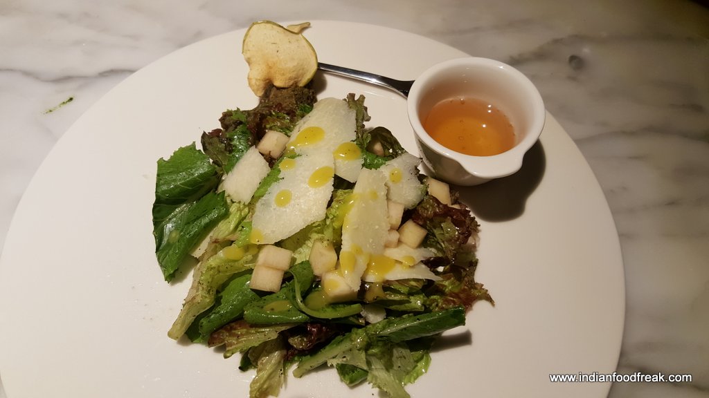 My friend and I started with a Gherkin and Wasabi amuse bouche. It was followed by Chilean Empanadas, a pastry stuffed with chicken and deep fried. Though it was made well, the pastry needed to have been fried on sim to get it crisper.