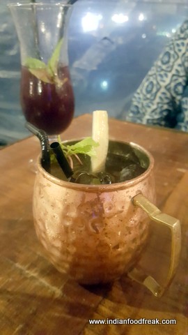 As if to prove that point, while we are just getting over blowing kisses to each other, Shatbi offers me a Martini that is simply BRILLIANT. The very aromatic, mildly sweet cocktail which they call Planet M, has small spheres of blueberry and peach at the bottom of the drink and is soothing and potent, both at the same time. Similarly the Rosemary and Peach Gin and Tonic served to my partner was spritzy, herbaceous, with the right amount of sweetness too. This was an absolute home run for my partner who is quite an occasional drinker.