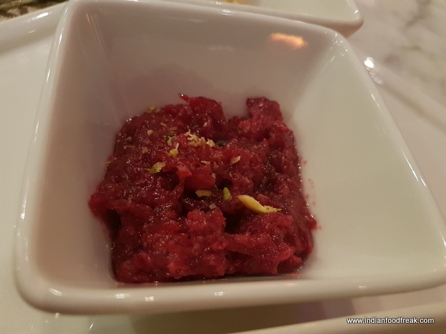 The dessert platter had Sheer Khurma(the usual vermicelli, milk and nuts), Chukandar e Afroz (had beetroot and sunflower seeds – my pick among the desserts) and Gur ke Yaquiti (chickpea flour pudding with jaggery).