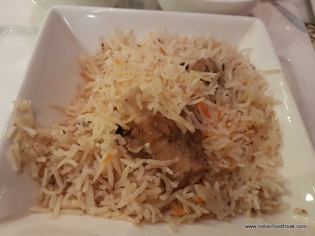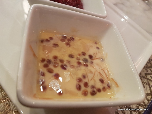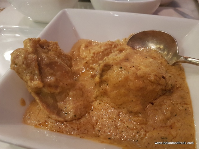 Our mains comprised of Ittr Ka Dal (dal which had milk, cream, ghee and some sweet essence), Taar Korma (a mild, fragrant, slow cooked mutton), Murgh Begam Bahar (chicken cooked with cashew nuts, fenugreek and yoghurt), accompanied by Nawabi Kulcha, Sheermal, Rampuri Naan. I liked the Yakhni Gosht Pulao which had clear notes of saffron and had been cooked dum-style. That it was not swimming in oil gives it a clear thumbs-up!