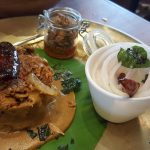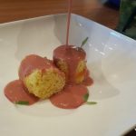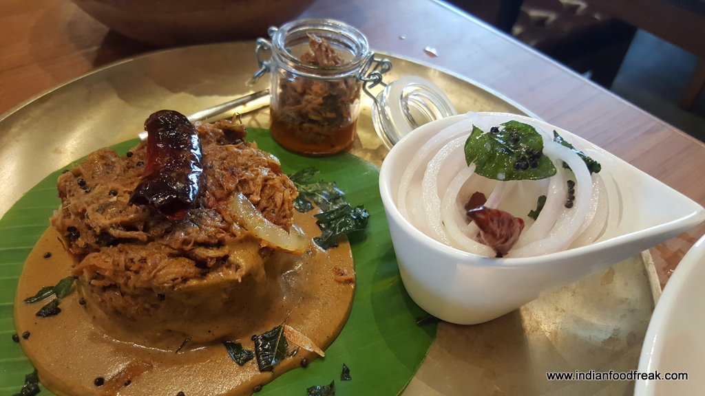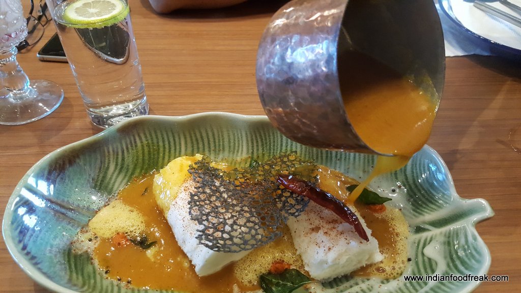 Dhokla in Marathi sol kadi had us craving more for the sol kadi which we had separately too. The combination though nice could have been balanced with more of sol kadi and smaller pieces of dhokla that would make it qualify as a soup. In its current form it was more of a started with little jus on the side. In Kanjivaram idli served with coconut chutney, gun powder and sambhar the sambhar was absolutely delicious with just the right consistency but the idlis could have been softer considering the technique that is being applied to make them. I would have also preferred the taste of gun powder standing out more as it was kind of mild.