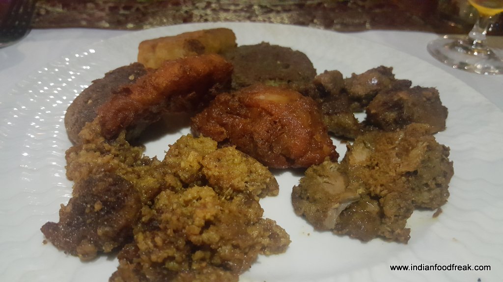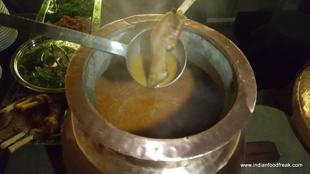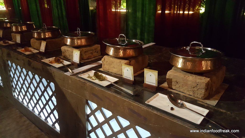 The buffet priced at Rs 1599/- (including taxes) per person has a huge variety to offer from starters (both in non veg and veg) to desserts. Live counters serving Paya, Haleem, Shikampoor kebab etc (which was a great start and we had a first hand experience of the hard work and reasearch gone in by the Chef), bhagare baigan , paneer tamater ka kut, besan ke nimboo (which I found quite interesting in the veg fare main course) and an array of chutneys, breads that include Ftiri, Rogani Roti, Jonna Roti besides other popular ones, a chai counter wearing a local tea stall look, desserts from the famous double ka meetha and shahi tukda to aloo ki kheer made for an excellent meal with no disappointments.
