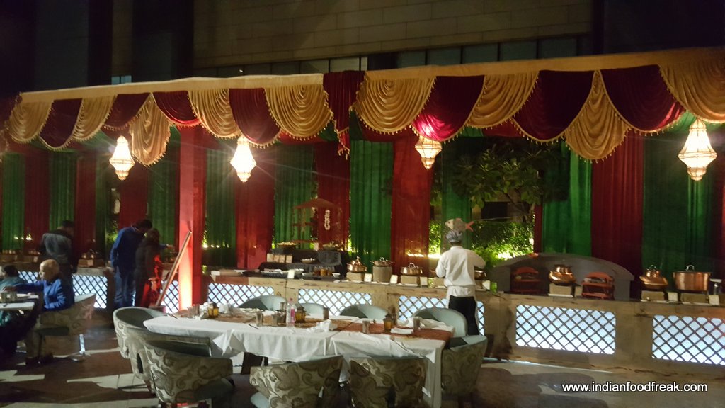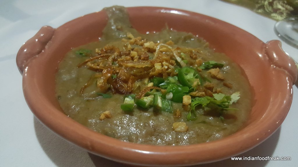 Dine like a Maharaja as the festival is named explores the city of Nizams Hyderabad with Chef Ashwani Kumar Singh recreating delicacies from this regal cuisine. A lot of research has gone into putting the festival together with the Chef and his team having traveled to Hyderabad to bring in authenticity to the cuisine. The festival being held at the outdoor section of their restaurant Dilli 32 wears an extremely impressive look and is a treat to the eyes. The hotel has recreated a red-green look that fits the city of Hyderabad with touches of forts, jharokas and a beautiful stage set up with live ghazal singing giving it a very nawabi feel.