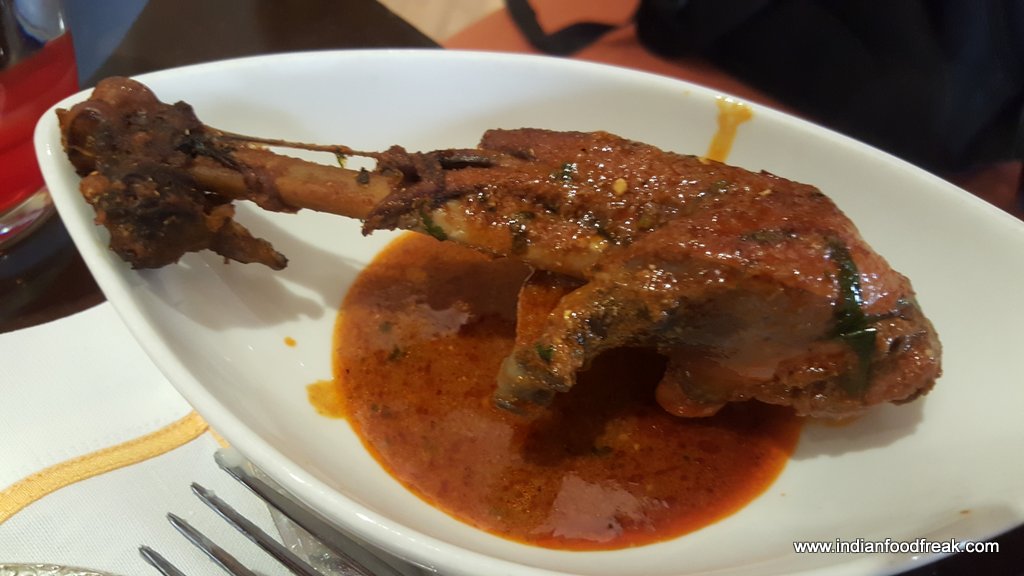 The non veg platter includes Keeme ki tikki, Bundeli Gosht, Shikaar Gosht and Kadaknath Murgha. Kadaknath is an Indian breed of chicken local to the Madhya Pradesh area. It is popular for it’s good tasting black meat. However due to the unavailability of this breed here in Delhi the locally supplied chicken is used for the preparation. The breads include tikkad, jowar ki roti, bajre ki roti and adraini luchai which is very soft to eat. The end to all things good has to be sweet and Rass ki kheer and Magadh ke ladoo add more sweetness to our experience.