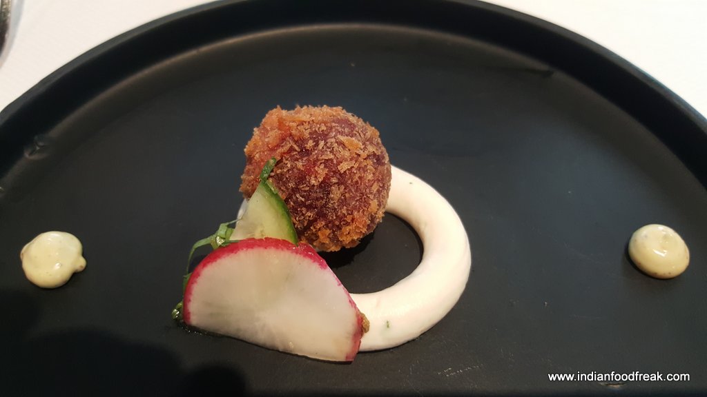 The day I visited the restaurant Chef Manish Mehrotra was traveling and Chef Shantanu Mehrotra was not keeping well hence was off for the day. This gave me an opportunity to meet their young talented sous Chef Dhiraj Dargan. With the senior team not there in a packed restaurant, the team seems to be taking care of the entire operations effortlessly, with the chef coming in at regular intervals to check on the guests and how everyone is enjoying the meal besides also sending some surprises off the menu on his own. With such an experience it is no surprise why Indian Accent is what it is.