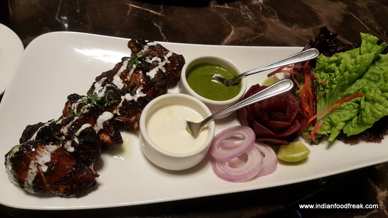 Our meal begins with Murgh Kalapasi which for me turns out the highlight of the meal. Boneless chicken thigh marinated with a variety of black spices. Cooked in the tandoor this is a delight to eat with a nice crunchy coating of besan. Izzati kakori seekh kebab follow next which are truly mouth melting. The dishes seem to have just the right amount of spices used to give it a good balance and right flavouring.
