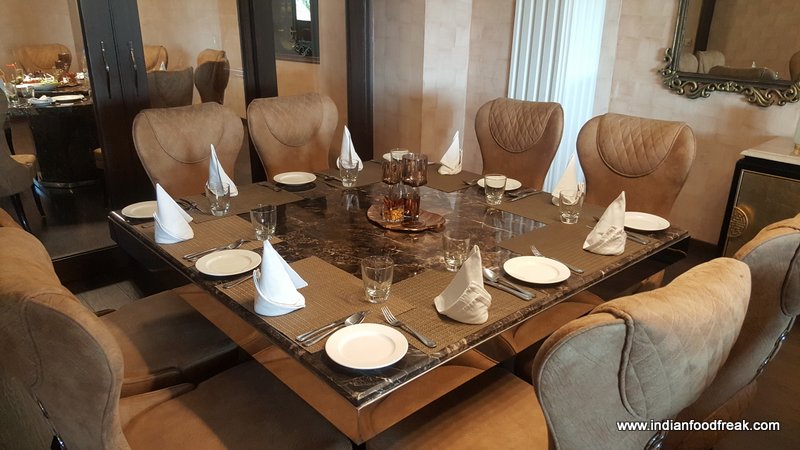 Located at the Gardens Galleria Mall in Noida, Spellbound does have you intrigued the moment you approach the entrance. The logo of the restaurant itself spells a royal touch and once we are inside we aren’t surprised as it truly does leave you spellbound. The restaurant interiors speak no less of interiors that you would find in a 5 star property. From the furniture, to the crockery to the private dining room and the uniform of the staff everything has a royal touch. The restaurant is spacious with 3 levels that includes terrace sitting. The lower level has a seating capacity of around 100 people with the terrace accommodating upto 60 people.