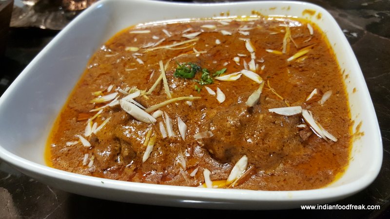 Our main course consists of Mutton badami Quarma served with mint ginger kulcha and sheermal as breads. The mutton is cooked to perfection and to see the kind of consistency in the curry where no water is being used to prepare the dish is certainly impressive. Every bite of the breads with the curry are absolutely delicious. The sheermal served is new and unique to us as always had experience of having it slightly thicker and with a firmer base. This is thinner, soft and has loads of butter used giving it that glaze and making every bite silky smooth. Flavoured with freshly crushed ginger and mint cooked in the tandoor I simply enjoyed the mint kulcha.
