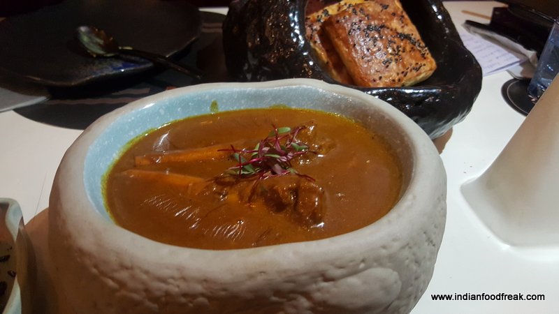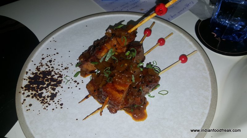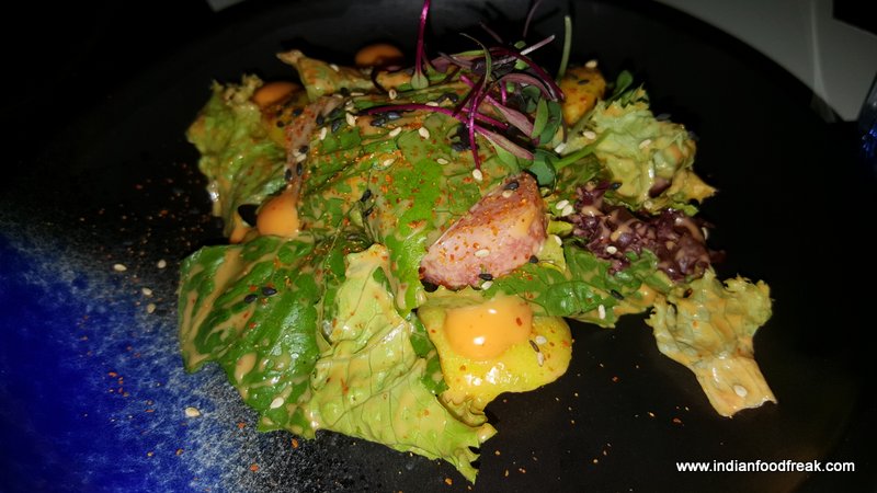 By the way, I must mention that while the food was wooing us at one end, the exotic cocktails were playing havoc (in a nice way) on the palate on the other end. Must try cocktails are Early Morning Gin Sour (Earl Grey infused gin, orange marmalade, lavender and egg white), Japanese Negroni (Yuzu, Gari, nori sheet, sesame oil), Fatty Pig (bacon infused Bourbon, mix berry preserve and bacon crisp served on the side), Pronounce It (Gin, lemon, sugar and asafoetida) and the Shark Tank (Tequila, galangal, Yuzu, rosemary, sea salt and blue curacao).