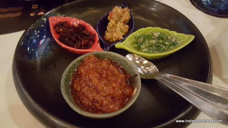 Nepalese Chicken Broth was like an explosion of flavours for the palate. Chicken bones are cooked for hours on slow fire and finished off with sesame paste to add a rich, creamy, nutty flavor. If this was not enough, there were noodles, vegetables and chicken bits to add to the heartiness of this soup.