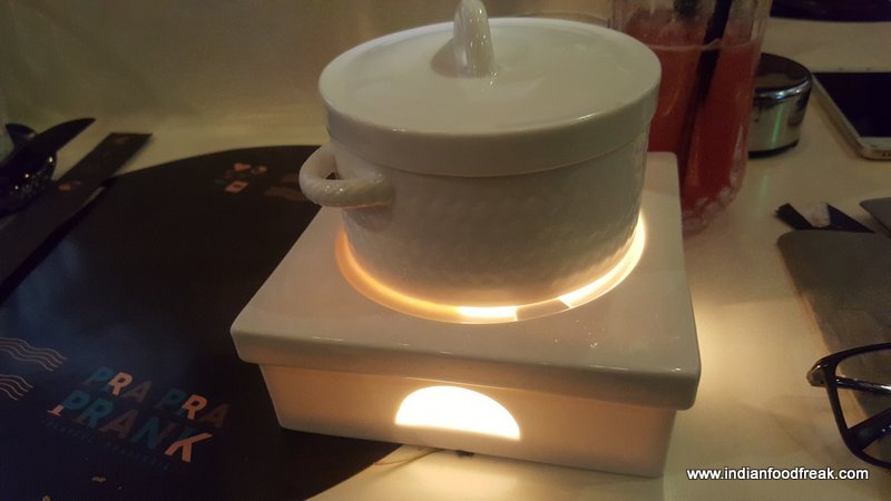 At the outset, what got me curious was the name Pra Pra Prank. I was told that the words “Pra Pra” reflect the significance of “two” (2) – the restaurant is a coming together of 2 cuisines i.e modern Asian and modern Indian, is a creation of 2 brothers (Inderjeet and Jasmeet Banga}, has 2 excellent chefs i.e. Harangad Singh and Kaustabh Haldipur and is 2 restaurants in one – a bistro café and a well cordoned off classy bar. “Two” is certainly a great number in this case as it made me dance delightfully through an exotic culinary journey where not only did each dish taste better than the previous one but very evidently, great thought had gone into the flavour profile, pairing of ingredients, textural contrasts, unique presentation, perfect execution and fabulous taste which lingers on in the palate leaving it asking for more.