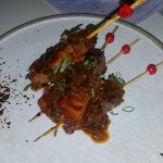 Pork Belly Screwers with Kalonji (onion seeds) and Raw Mango relish – as the name suggests, there were skewered, soft pork belly chunks drizzled with a sweet raw mango chutney which had mango bits. Another great pairing as pork always tastes better with a sweet sauce.